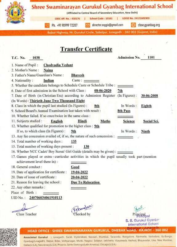 Chodvadiya Vedant Bhavesh